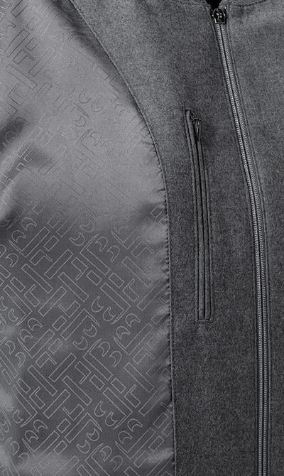 Details zum Sakko: Schmal geschnitten, Mit Stehkragen aus feinem Rippenstrick, Sakko mit Reißverschluss, Leistentasche/n, Tasche/n mit Reißverschluss innen eine vertikale