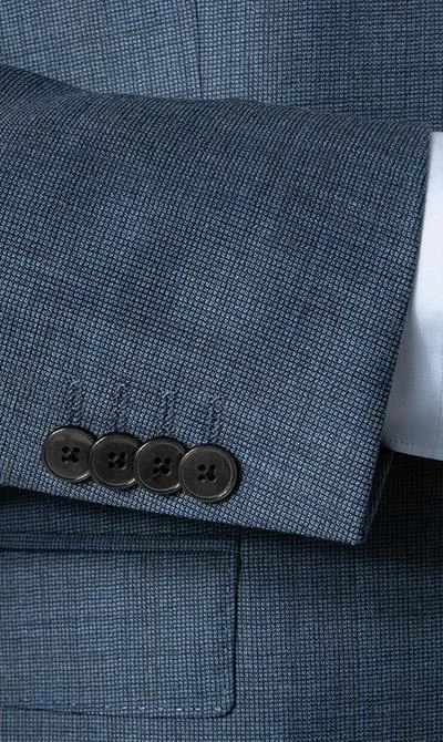 Details zum Sakko: Reverskragen, Zwei-Knopf-Sakko, Einreiher, Leistentasche/n, Paspelierte Pattentasche/n, Doppelschlitze, Zierschlitz mit Kissing Buttons, Paspeltasche/n innen beidseitig