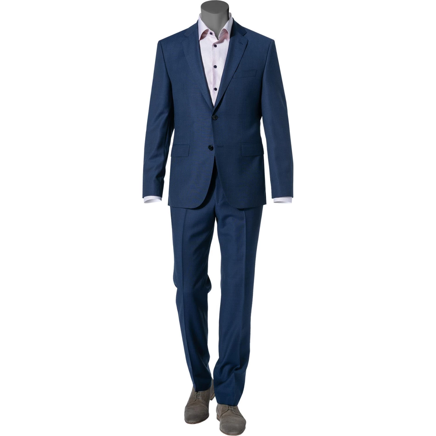 Cleaner Zweiteiler mit gerader Passform. Der zeitgemäße Anzug besteht aus einer Flatfront-Hose und einem Zwei-Knopf-Sakko. Beide Styles sind aus italienischer Schurwolle mit markanter Melierung gefertigt. Das Gewebe ist von Natur aus elastisch und verspricht hohen Tragekomfort. Tragen Sie den vielseitig kombinierbaren Anzug mit einem Baumwollhemd und Accessoires für einen eleganten Business-Look.
