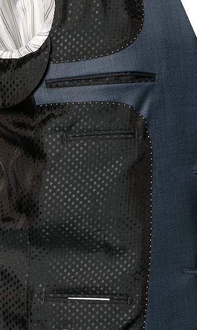 Details zum Sakko: Schmal geschnitten, Tailliert, Reverskragen, Zwei-Knopf-Sakko, Einreiher, Ziernaht in Handstich-Optik, Brustleistentasche links, Paspelierte Pattentasche/n, Doppelschlitze, Zierschlitz mit Kissing Buttons, Paspeltasche/n innen links drei, Tasche/n mit Knopf und Lasche innen rechts eine
