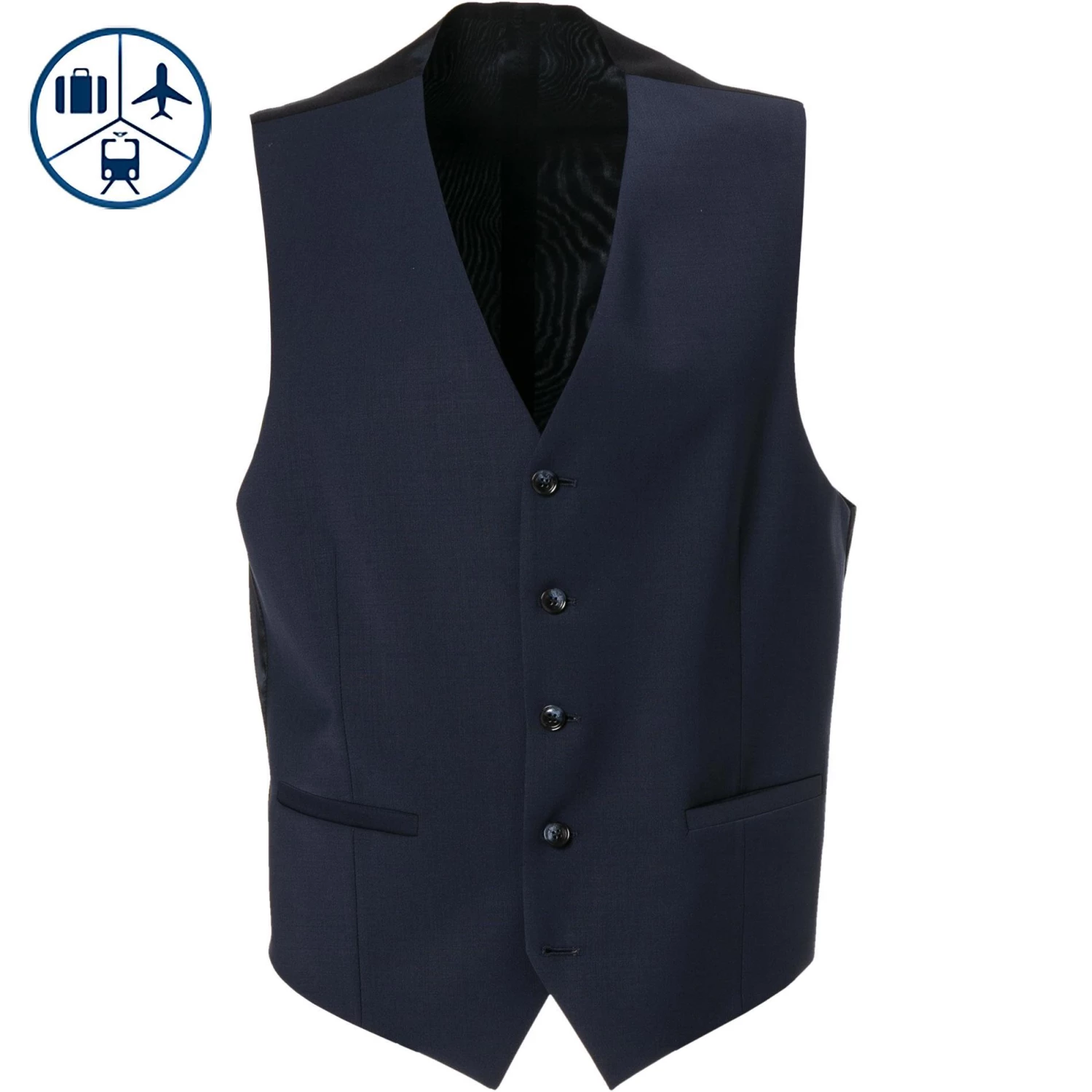 Das Material ist feiner Schurwoll-Mix mit Stretch-Anteil, das kaum knittert und damit stets in Form bleibt. Die Weste ist hochwertig verarbeitet, das Stretchfutter und der verstellbare Taillenriegel sind funktional. Ob Reise oder Meeting-Marathon – Ihr Auftritt im Travel-Anzug mit passendem Sakko und Hose ist stets gepflegt und seriös. Der perfekte Begleiter für alle, die viel unterwegs sind.