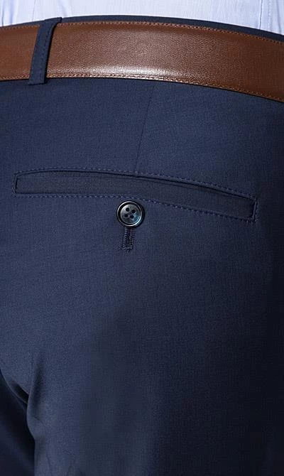 Details zur Hose: Verlängerter Bund, Schmal geschnitten, Aufgesetzte Taschen, Leistentasche/n, Bügelfalte