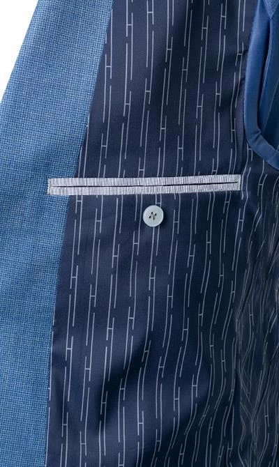 Details zum Sakko: Reverskragen, Zwei-Knopf-Sakko, Einreiher, Brustleistentasche, Paspelierte Pattentasche/n, Doppelschlitze, Zierschlitz mit Kissing Buttons, Paspeltasche/n innen, Tasche/n mit Knopf und Lasche innen