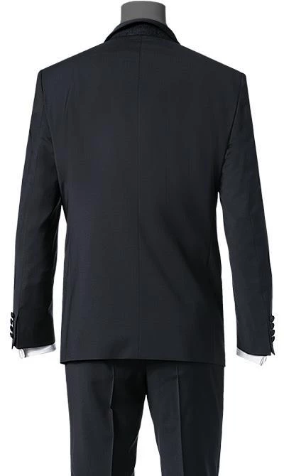 Eleganz und Minimalismus, perfekte Passform und beste Tuchqualitäten – dieser Smoking ist der perfekte Begleiter für den formvollendeten Auftritt beim Abendtermin und festlichen Gelegenheiten. Der klassische Zweiteiler, schlank geschnitten, mit Spitzrevers und Satin-Details brilliert auch bei der Schurwoll-Qualität Super100.