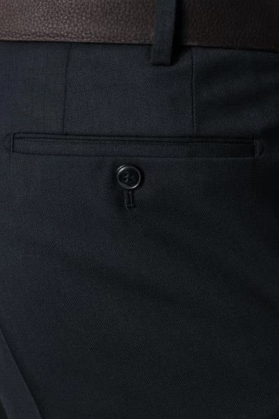 Gepflegter Look in Kombination mit hochwertigem Materialeinsatz, so präsentiert sich diese Businesshose. Der Style-Aufbau ist klassisch gehalten mit viel Liebe zum Detail, Gürtelschlaufen und Tascheneingriffen ist eine feine Handstich-Ziernaht gesetzt. Dadurch erhält sie zusätzlich einen wertigen, maßgefertigten Charakter.