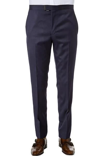 Details: Anzughose, Schmal geschnitten, Normale Bundhöhe