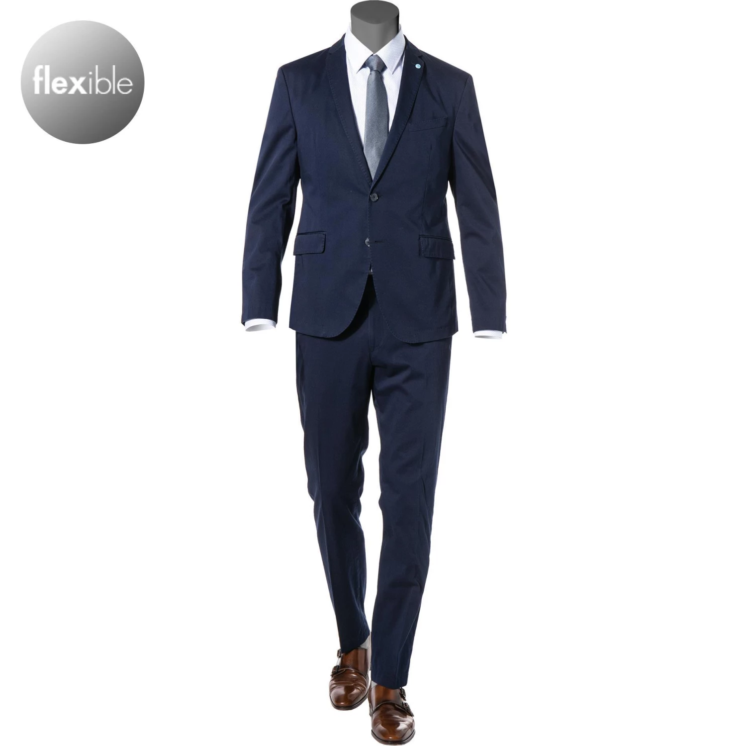 In angenehmer Baumwoll-Stretch Qualität präsentiert sich dieser Anzug im klassischen Design mit leichtem Halbfutter im Sakko. Eine legere Alternative, die sich mit dem Stretchfutter bequem tragen lässt. Moderner Casual Look für den Anzug.