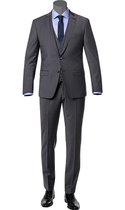 Ein Dreiteiler im klassischen Design für den trendbewussten Mann. Aus hochwertigem Schurwoll-Stretch gefertigt in feiner Melange und Glanz verleiht er Ihrem Look eine erstklassige Ausstrahlung. Für die smarte Business-Garderobe wie für offizielle Anlässe bestens geeignet – ein stilvoller Allrounder für einen gekonnt seriösen Auftritt.