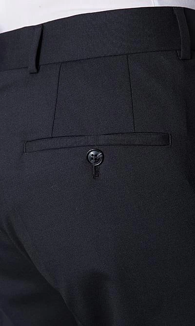 Details zur Hose: Verlängerter Bund, Schmal geschnitten, Leistentasche/n hinten geknöpft, Seitliche Eingrifftaschen, Bügelfalte