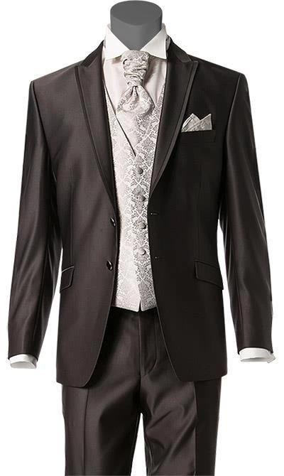 Der perfekte Begleiter zum Brautkleid in Weiß Kombinieren Sie diesen edlen Hochzeitsanzug mit einem Smokinghemd oder einem Hemd mit Hai-Kragen in Weiß. Als Schuhe empfehlen wir Ihnen Glattlederschuhe mit Ledersohle (tanzfähig) in Schwarz, für die Kniestrümpfe (bei formellen Anlässen ein Muss) einen möglichst exakt auf die Schuhe abgestimmten Farbton.