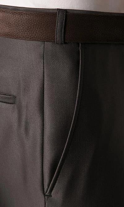Details zur Hose: Verlängerter Bund, Schmal geschnitten, Aufgesetzte Taschen, Leistentasche/n, Bügelfalte