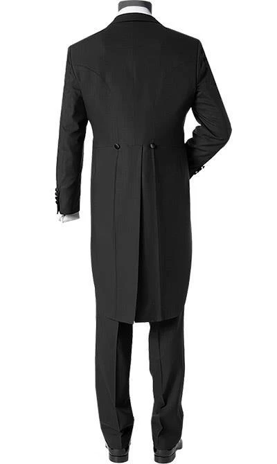 Der Frack ist der König der festlichen Herrenkleidung: Zeitlos, männlich, wertvoll – die offizielle Bekleidung für hochfestliche Anlässe. Dazu eine tief ausgeschnittene Piqué-Weste und ein Frackhemd mit Piquébrust in Weiß. Ein Muss ist die Schleife in Weiß und schwarze Lackschuhe.