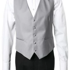 Nichts wertet den Look so auf wie die Weste. Damit bekommt der Cut das gewisse Extra. Für den Cut als klassischen Hochzeitsanzug gibt es festgelegte Regeln und Bekleidungsvorschriften: Man trägt dazu die gestreifte Stresemannhose, eine graue Weste und ein weißes Hemd mit Kragen und silbergrauer oder farbiger Krawatte, alternativ ein Hemd mit Kläppchenkragen und dezent grauem Plastron. Der graue Zylinder ist zweifellos die Krönung des Outfits.
