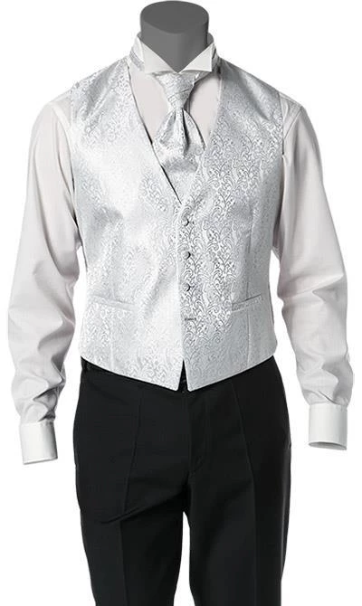 Elegante Weste mit romantischem Charakter: eine perfekte Ergänzung, am besten in Kombination mit einem Plastron, für Bräutigam-Outfits oder den festlichen Auftritt – eine dezente Glanzoptik unterstützt die elegante Wertigkeit und die Festlichkeit des Gesamtbildes.